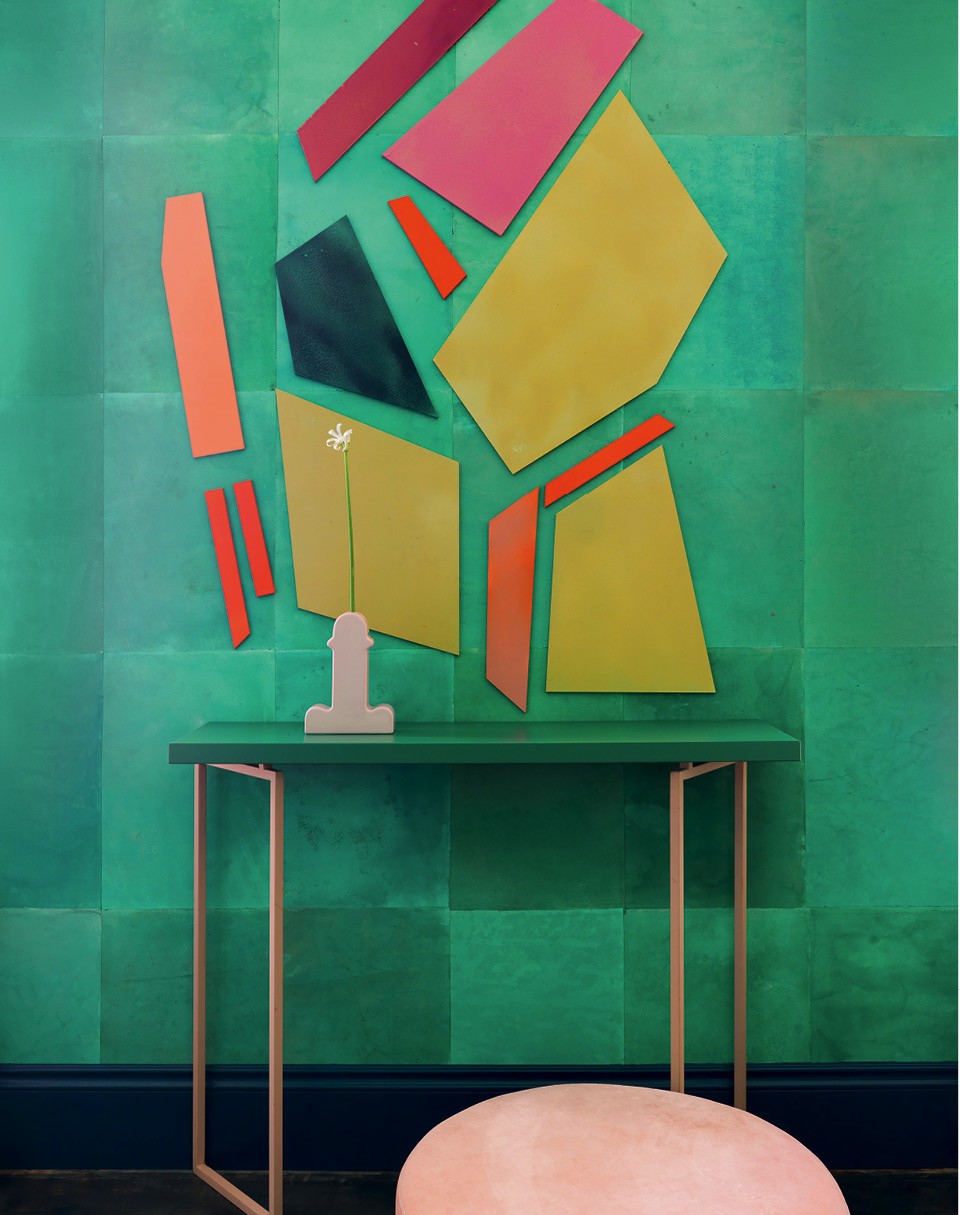 Сжатые сроки не помешали дизайнеру осуществить разные смелые идеи, например, необычным образом оформить стены в гостиной. “Я очень хотела оклеить их акварельной бумагой изумрудного цвета и не поленилась выкрасить вручную каждый лист, призвав друзей на помощь”, — рассказывает Ирина. Стены в коридоре Маркман тоже раскрасила самостоятельно. “Я как-то услышала фразу одного художника: “Цвет — это мое спасение от судьбы”. Это откликнулось во мне на тот момент. Помню, как, просыпаясь, выходила из спальни и этот яркий орнамент меня очень радовал и вселял теплые чувства. На мой взгляд, интерьер — это не про наполнение комнат мебелью, он несет в себе впечатления, опыт и настроения”, — вспоминает она.