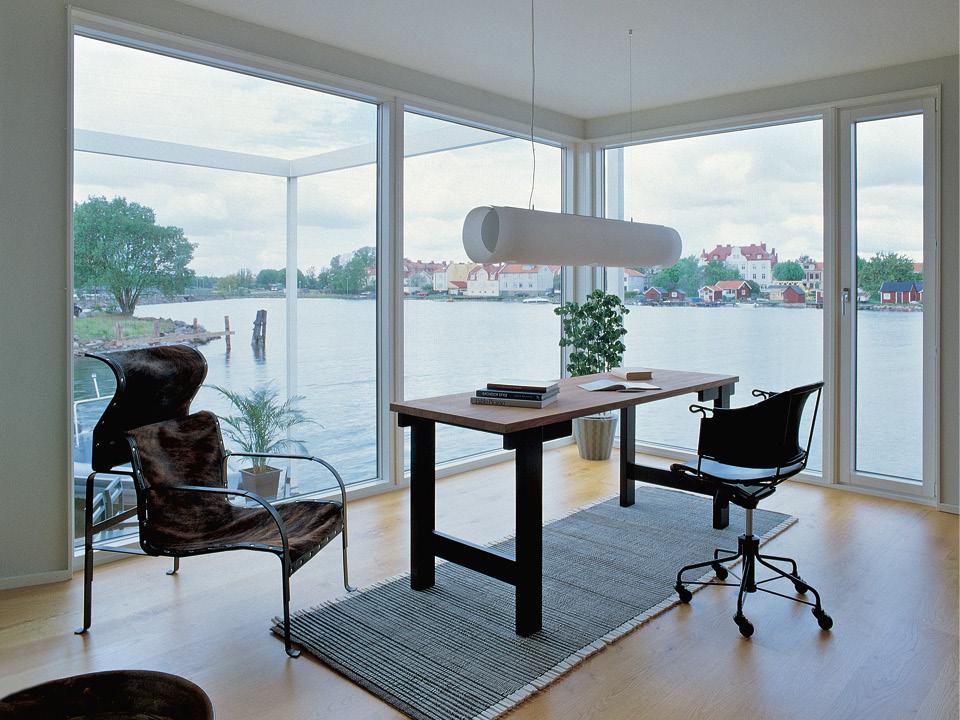 Даже самому минималистичному рабочему месту не обойтись без стола, удобного кресла и светильника. Ваза для визиток, небольшой коврик и второе кресло для посетителя не перегрузят обстановку, но сделают ее чуть более дружелюбной.