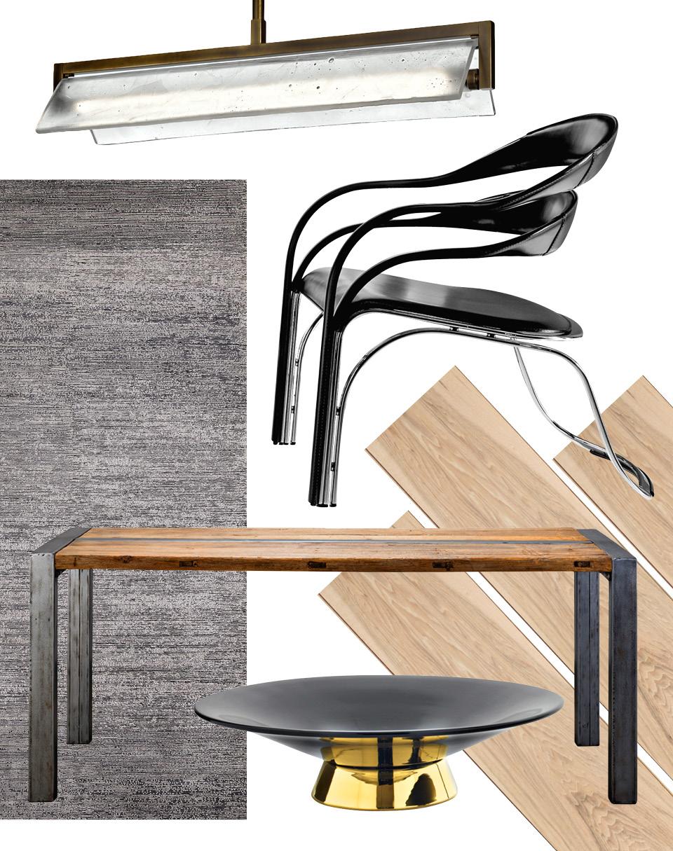 Стол Foundry, восстановленная древесина вяза, металл, Halo.