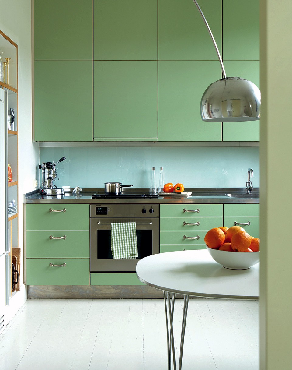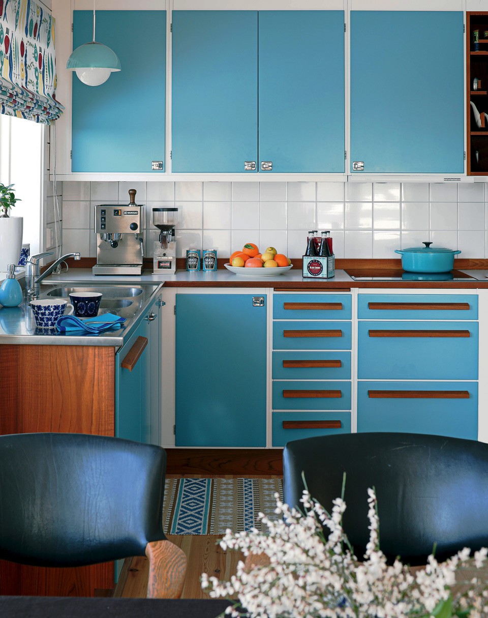 Как ни крути, а те, кто готовит дома, проводят на кухне много времени. Хорошо, если обстановка будет мотивировать на свершения и повышать настроение. Смелые оттенки бирюзового или желтого цветов вам легко в этом помогут. Ну а если к цветной мебели вы еще не готовы, нужную атмосферу создадут яркие аксессуары и посуда.