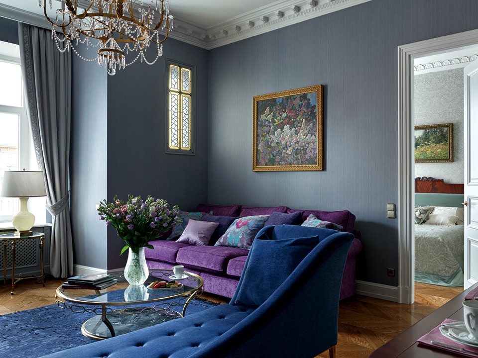 Квартира площадью 72 м² расположена в доме на Малой Конюшенной. В нaчале XIX века он был построен Федором Ивановичем Лидвалем — архитектором, который спроектировал многие питерские дома в стиле классицизма, а затем и модерна.