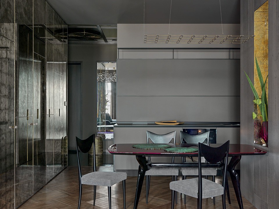 Хозяйка этой квартиры в арбатских переулках — женщина настолько занятая, что поначалу даже хотела обойтись без кухни. Мол, обедает и ужинает она в ресторанах и там же встречается с друзьями. Автор проекта Ольга Суркова хоть и отговорила заказчицу от столь радикального решения, но в целом оформленный ею интерьер получился очень камерным.