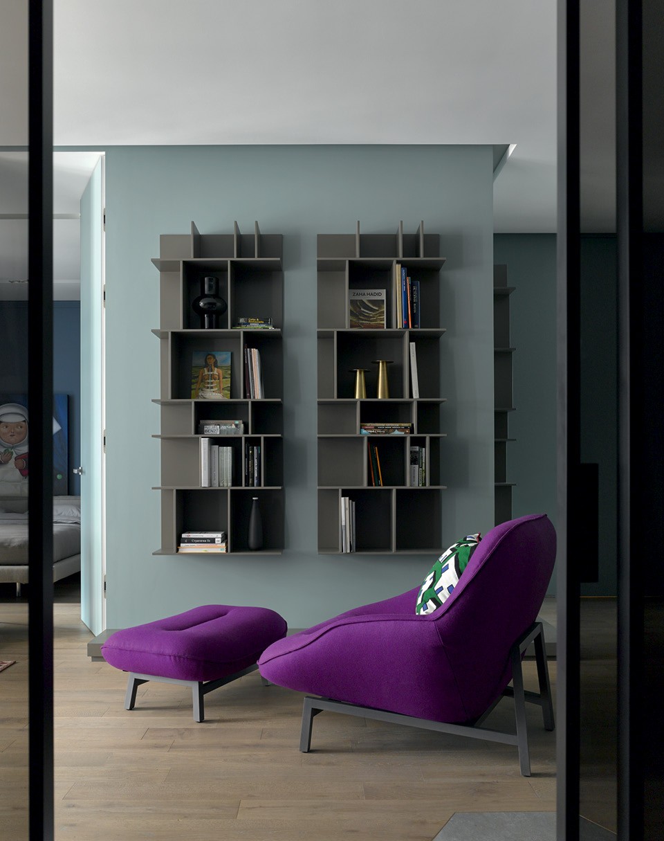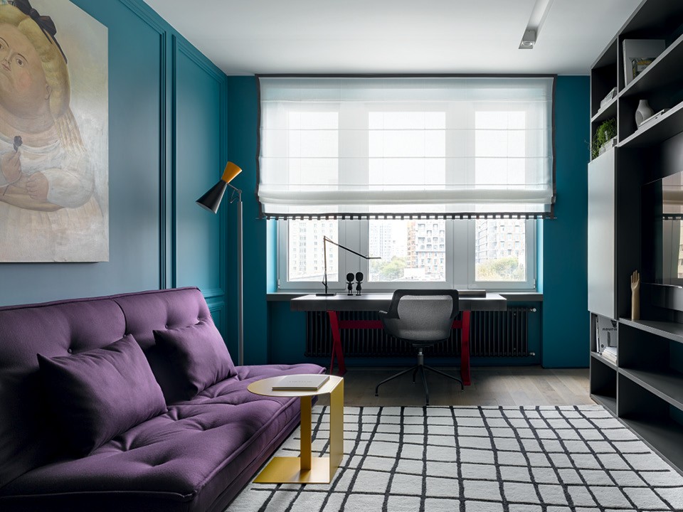 “Представление владельцев этой квартиры об идеальном интерьере было несколько противоречивым, — начинает свой рассказ Марина Кутузова, основательница калининградской студии “Детали”. — Хозяйка любит яркие цвета, а ее супруг предпочитает более спокойную цветовую гамму”. Но дизайнер нашла компромисс: цвет “зеленое яблоко”, нравившийся заказчице, заменила на менее бойкий синий и дополнила малиновым и баклажановым оттенками.