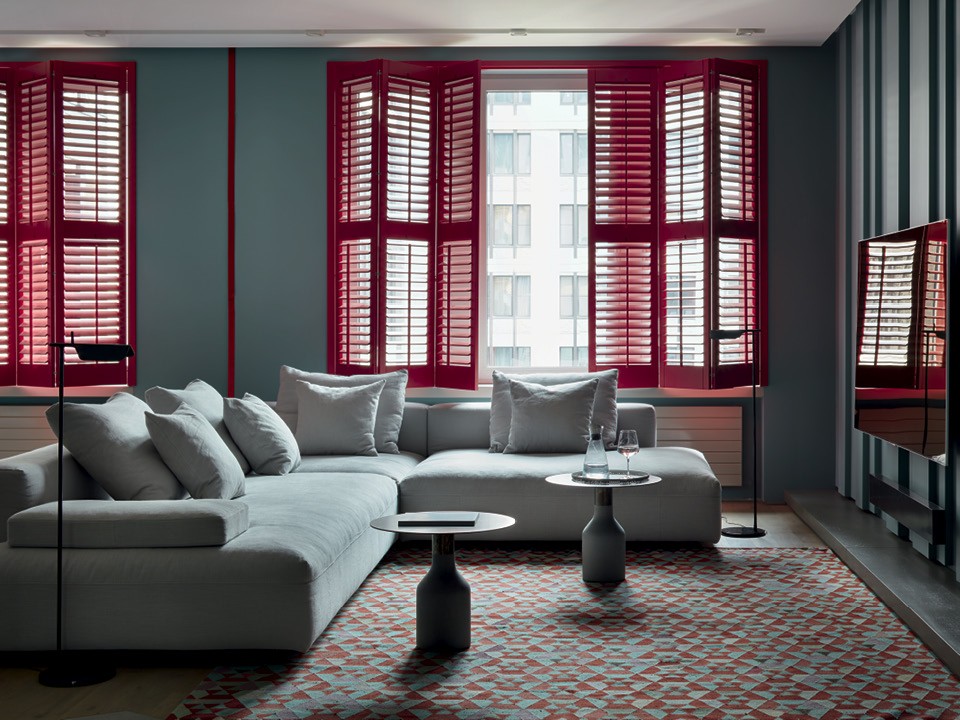 Отдельного внимания заслуживают малиновые ставни. Такой способ декорирования окон — это уже узнаваемый прием Кутузовой, но здесь ставни действительно необходимы. “Совсем рядом стоит жилой дом, от которого надо было отгородиться. В отличие от штор жалюзи не “съедают” пространство, они позволяют сохранять глубину, регулировать освещенность и добавляют драматичности, — говорит Марина. — Я рада, что смогла использовать в интерьере колоритные цвета, потому что не каждый заказчик решится на такие насыщенные оттенки. Даже супруг хозяйки, который сначала скептически относился к ярким сочетаниям, комфортно чувствует себя в этом интерьере”.