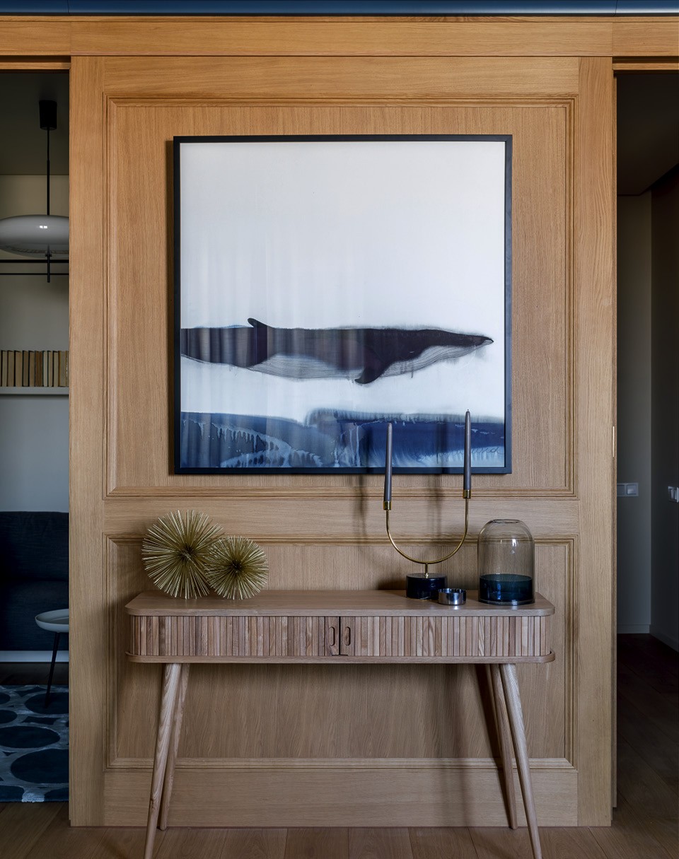 Заказчик Екатерины Угловой обратился к ней не впервые: она уже оформляла для него квартиру. Тогда обсуждение началось с просьбы “сделать все как в баре — зеленым и коричневым”. С тех пор молодой человек повзрослел, женился и на этот раз полностью доверился дизайнеру: за все время работы над проектом он побывал в квартире всего два раза. Екатерина решила создать вневременной интерьер, в котором переплетаются итальянские и российские традиции.