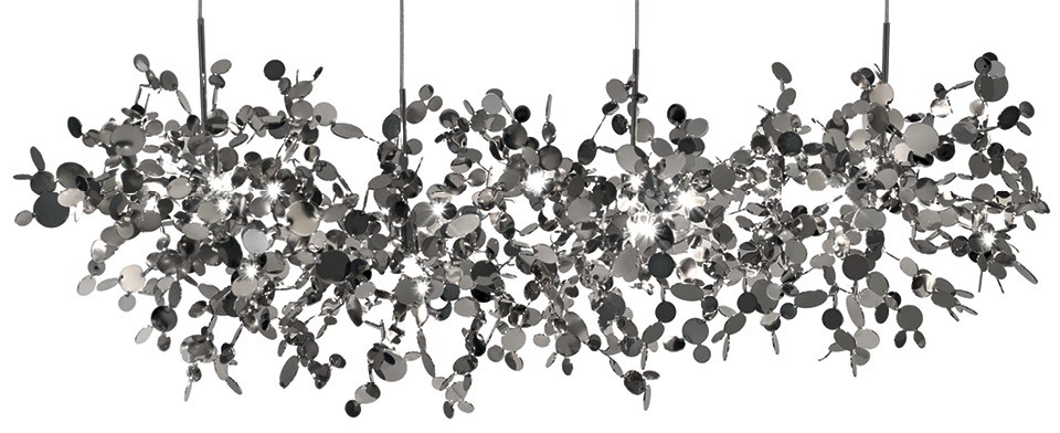 Люстру Cloud придумал дизайнер Додо Арслан. Десятки круглых пластин закрепляются на каркасе вручную, чтобы создать неповторимую игру отражений.