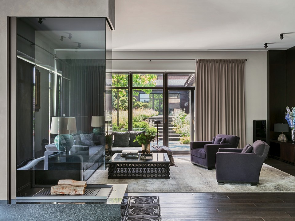 Олег Клодт и Анна Агапова выдержали дом в подмосковном Усове в цветах фламандской живописи — от глубокого серого до состаренного золотого.