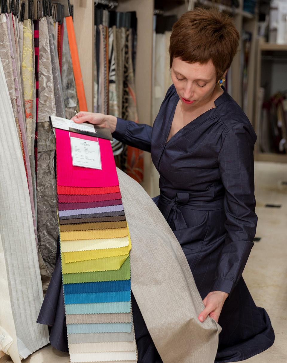 “Мне понравились голубые оттенки ткани Eolia, у нее классный муаровый эффект, и она будет хороша для штор”.