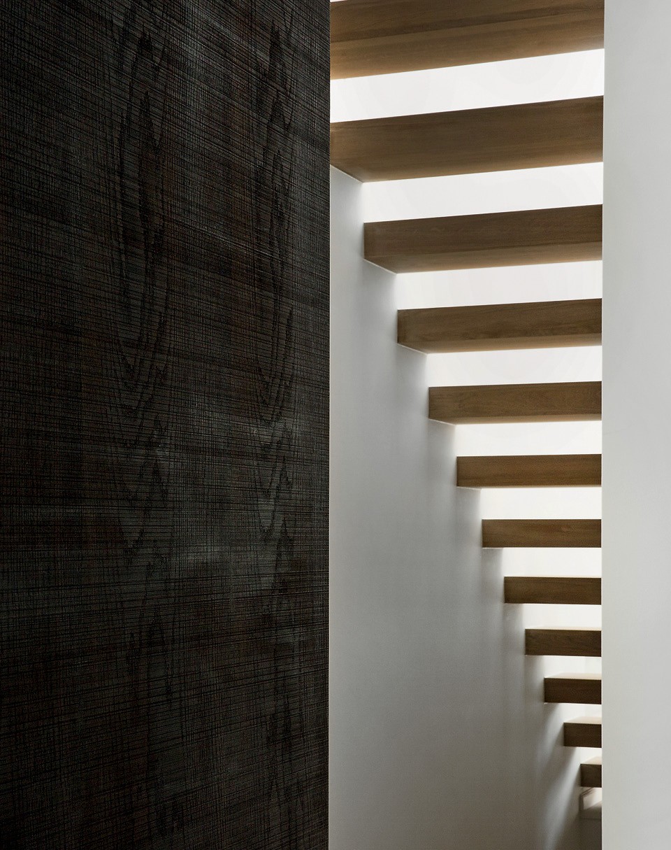 140‑метровая квартира была спроектирована для тогдашней CEO Jil Sander Констанс Дэрроу и получилась под стать лаконичным коллекциям этого бренда. Пространство делится на спальню и кухню-гостиную (на фото). Темная линия на стыке стен и наливных полов создает иллюзию парящих стен. Самое замысловатое в интерьере — окна с зеркальными откосами. Этот трюк, зрительно увеличивающий оконные проемы, авторы проекта подсмотрели в здании Whitney Museum по проекту Марселя Брейера.