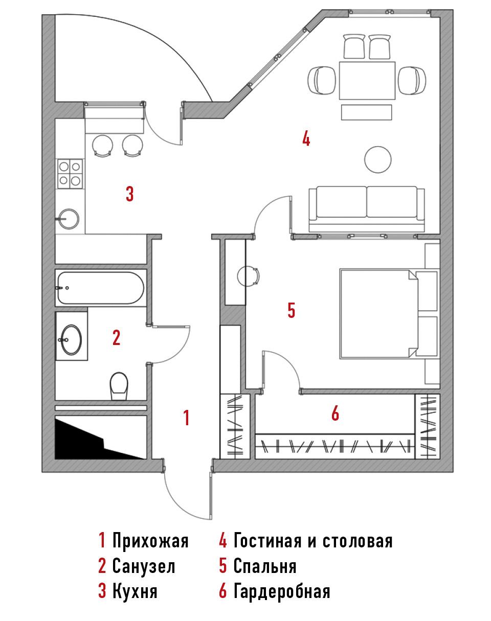 Квартира площадью 56 м² по проекту декоратора Ольги Шаповаловой