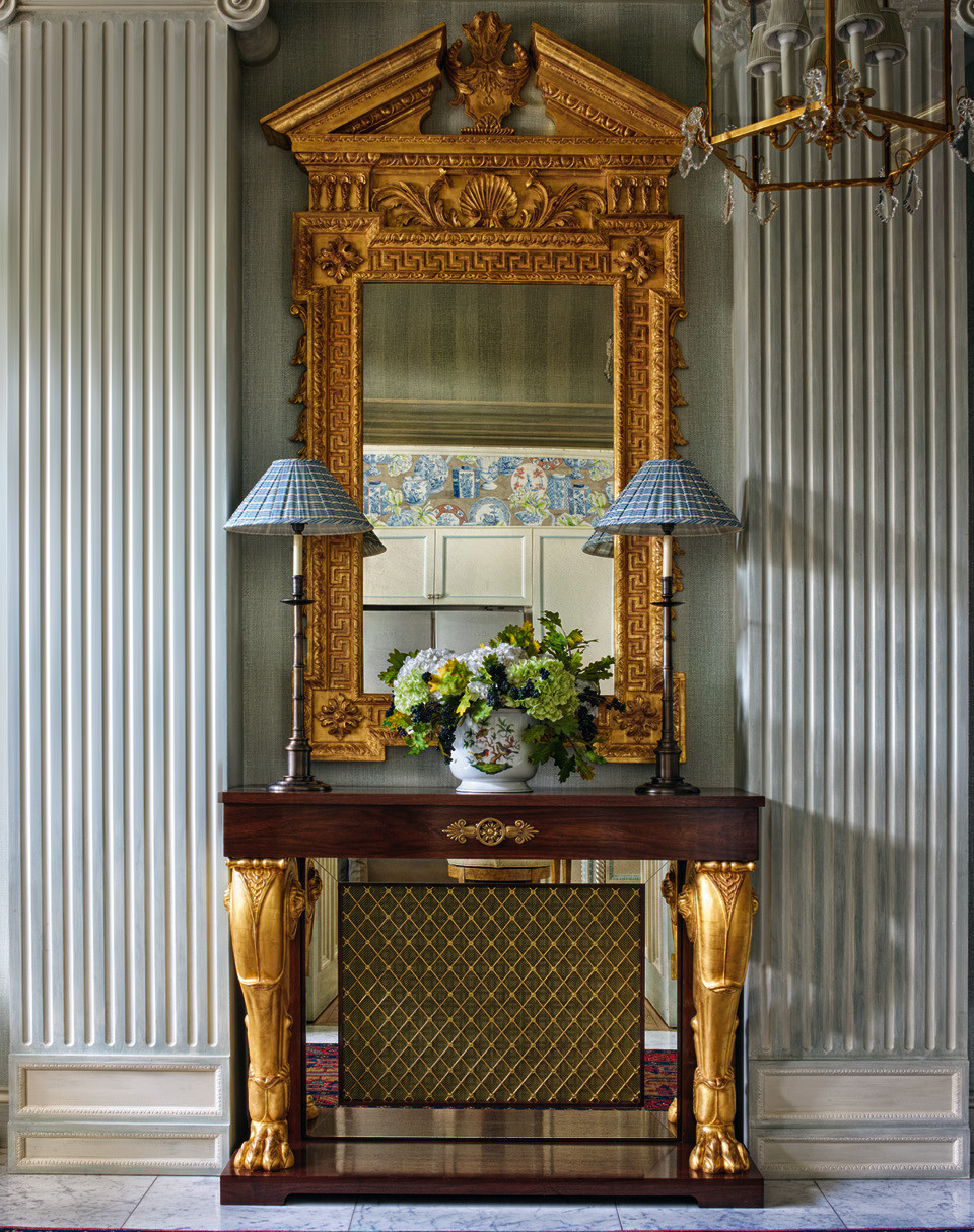 Американца Тимоти Корригана в Лондон занесло не случайно. Его давние клиенты купили таунхаус в районе Мэйфэйр и решили воссоздать в нем интерьер в духе XVIII века. Бриф от хозяев, членов катарской королевской семьи, звучал так: традиционная классика с использованием только английских брендов и антиквариата. За образец и источник для вдохновения Тимоти взял проекты знаменитого британского декоратора Джона Фаулера. “Мы с командой фактически воссоздали обстановку лондонского особняка Георгианской эпохи”, — говорит Корриган.