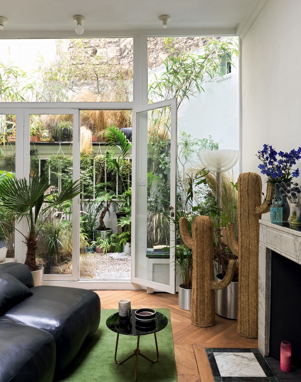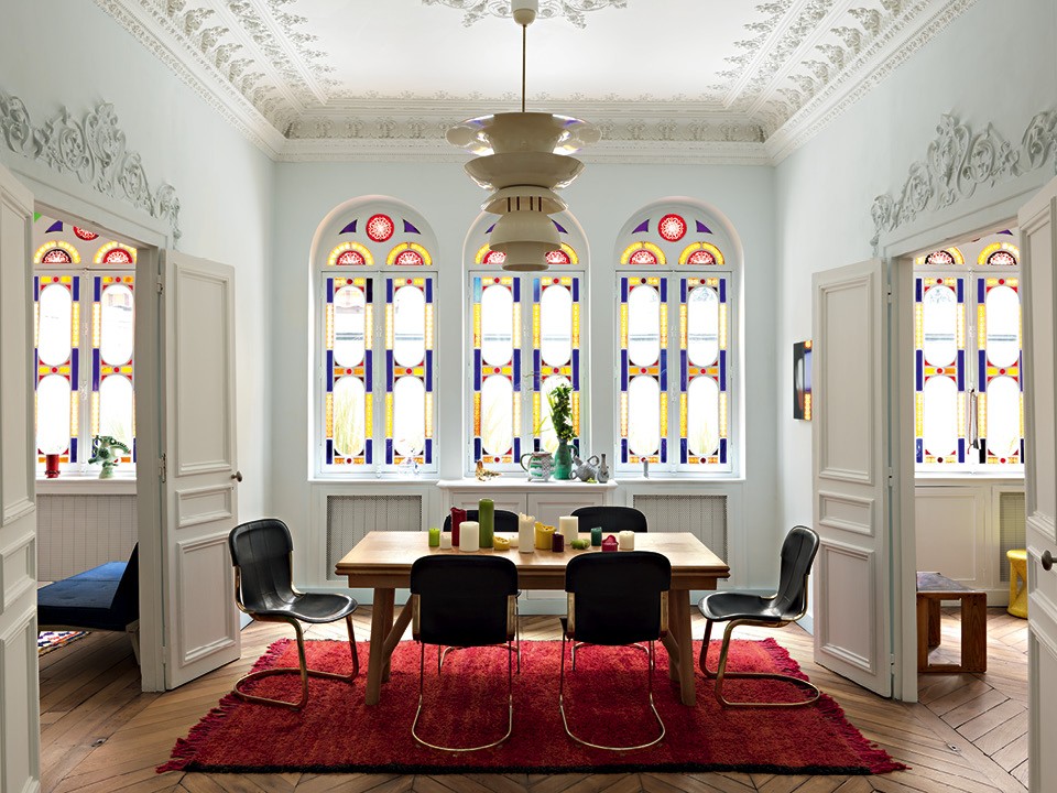 Жан-Кристоф говорит, что выбрал это место за присущий ему особый характер: “Эта квартира ни на что не похожа, в этом и заключается ее прелесть”. Здесь присутствуют типичные для парижских апартаментов детали — например, мраморный камин и лепные карнизы, но есть и уникальные вроде световых фонарей и витражных окон, которые особенно впечатляюще выглядят в солнечные дни. “Квартира становится похожа на маленький собор”, — говорит хозяин. Еще одним большим плюсом стал тихий и зеленый внутренний дворик. “Разительный контраст с самим районом, где не протолкнуться, — констатирует он. — Окрестности Пигаль стали очень популярным местом”.