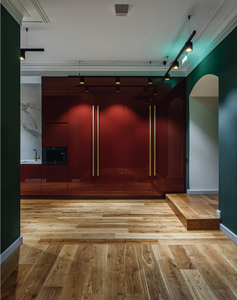 Мебель, свет и аксессуары Марианна намеренно подбирала современные, в основном на итальянских фабриках. “Идея была в том, чтобы возродить русский дух в этом особняке, но не воссоздавать точную обстановку тех времен, — объясняет архитектор. — Здание находится напротив Елоховского собора, колокола которого звонят несколько раз в день, поэтому здесь достаточно истории, а мы живем в XXI веке, и бытовая жизнь сильно изменилась”. Так, например, все светильники расположены не по центру комнат, а в тех местах, где они действительно нужны.