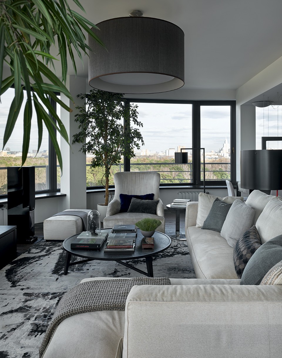 Архитекторы Дмитрий и Татьяна Хорошевы оформили квартиру в современном стиле с нежной росписью, этническими аккордами и игривыми деталями.