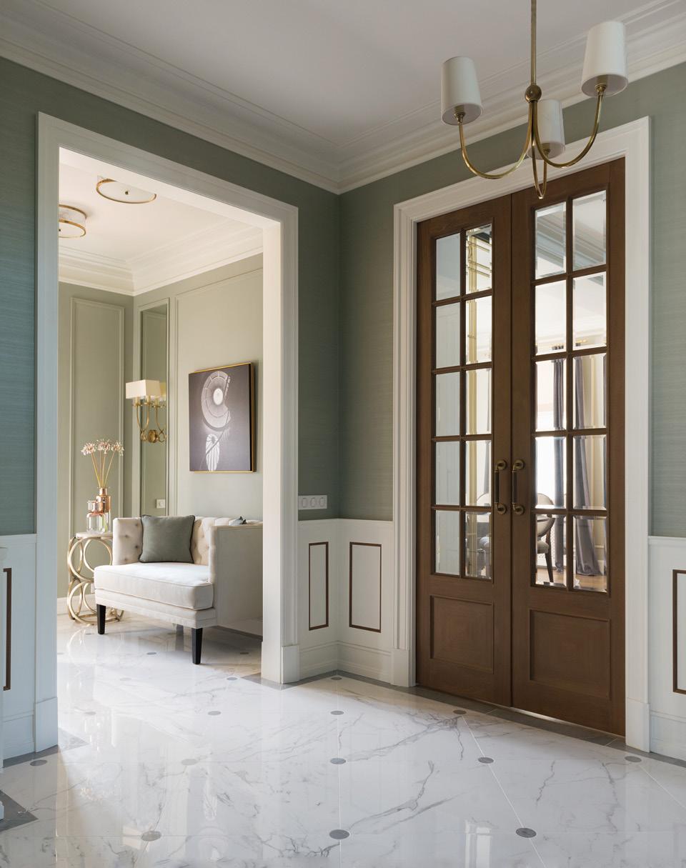 У владелицы этого трехэтажного дома в коттеджном поселке Трувиль было четкое представление о том, каким она хочет видеть будущий интерьер. “На первую встречу заказчица принесла большую подборку традиционных американских интерьеров, — вспоминает Владислава. — Однако дом небольшой, и, чтобы не перегружать его громоздкими вещами, я предложила немного поменять стилистику, сделать все более легким и элегантным”.