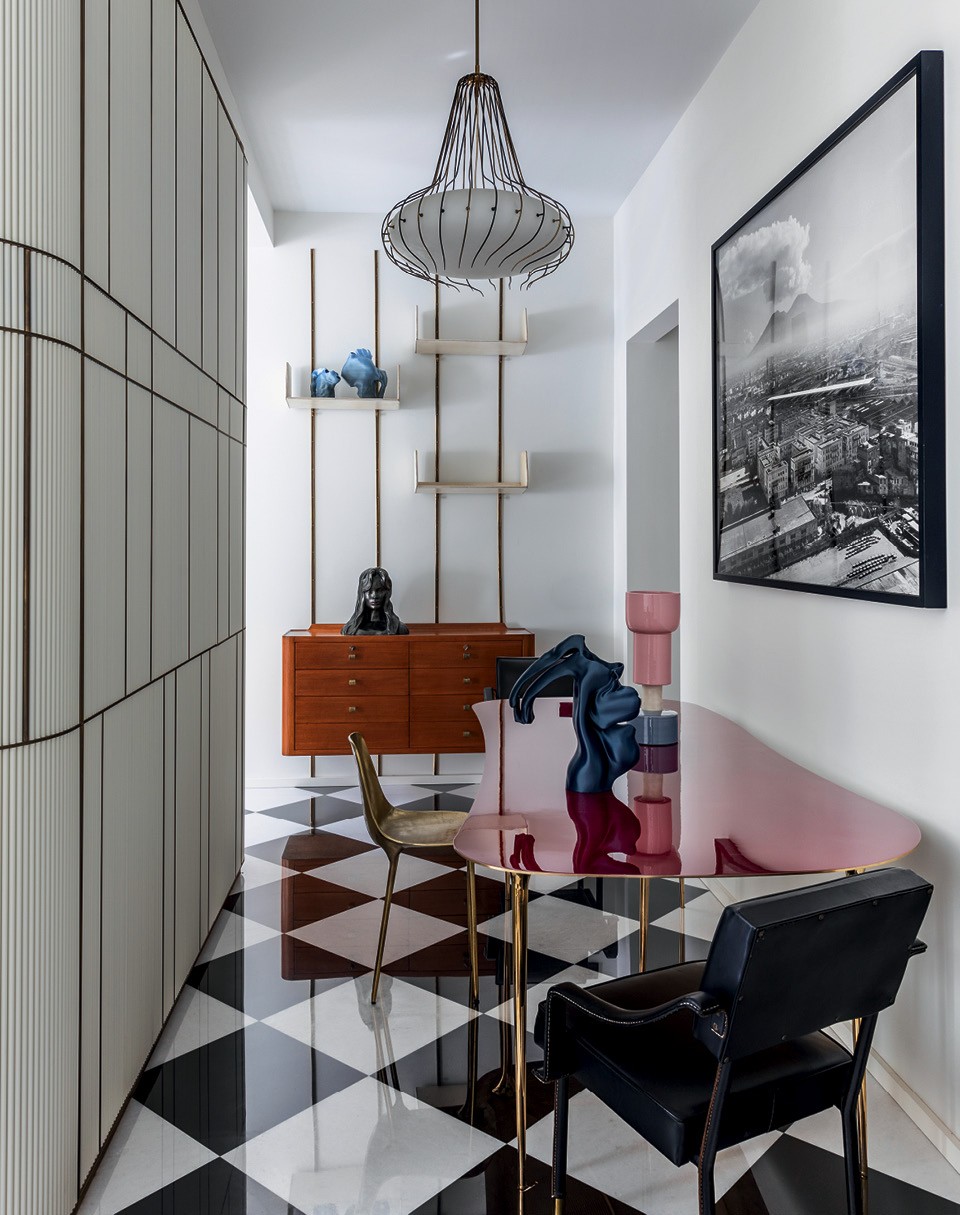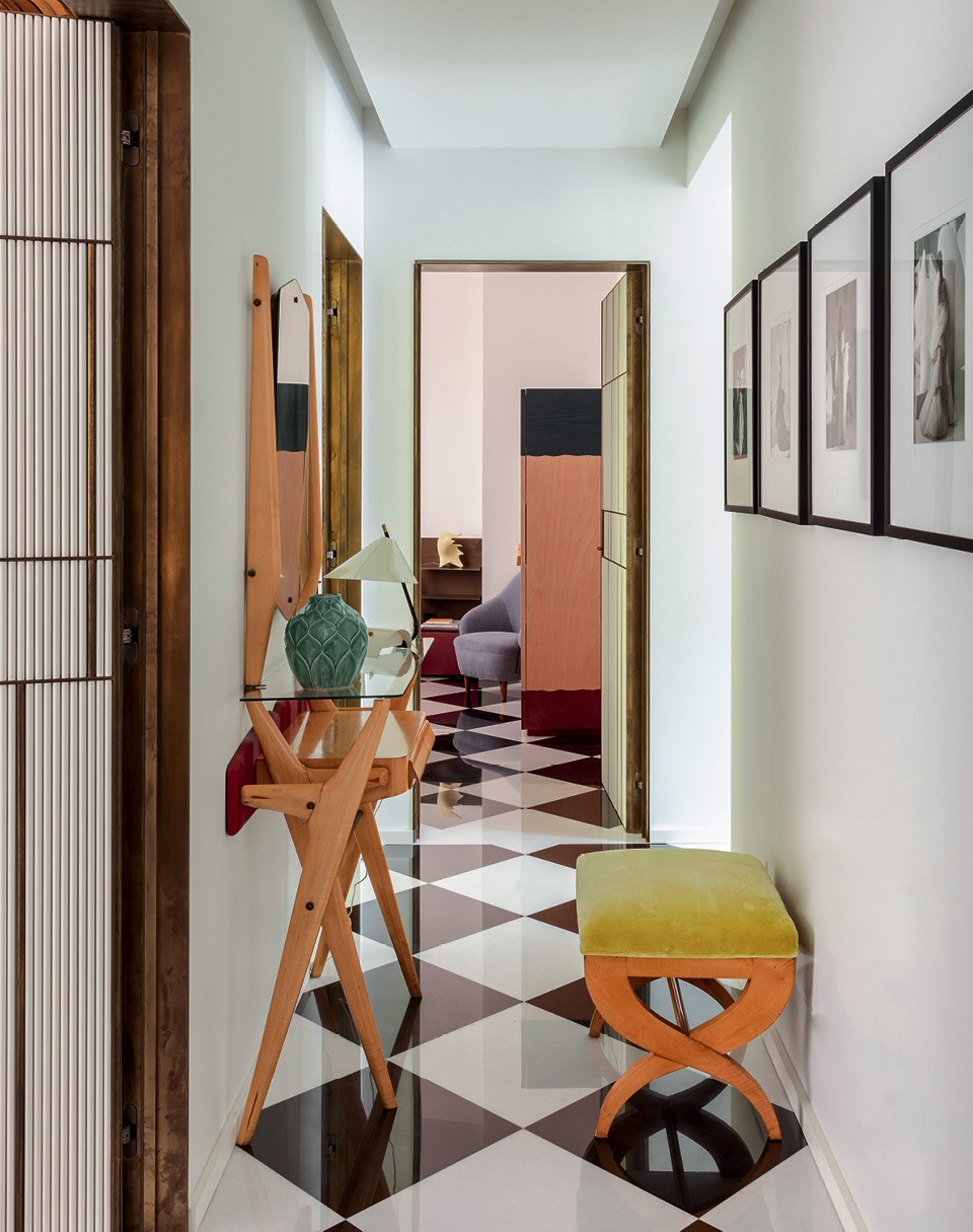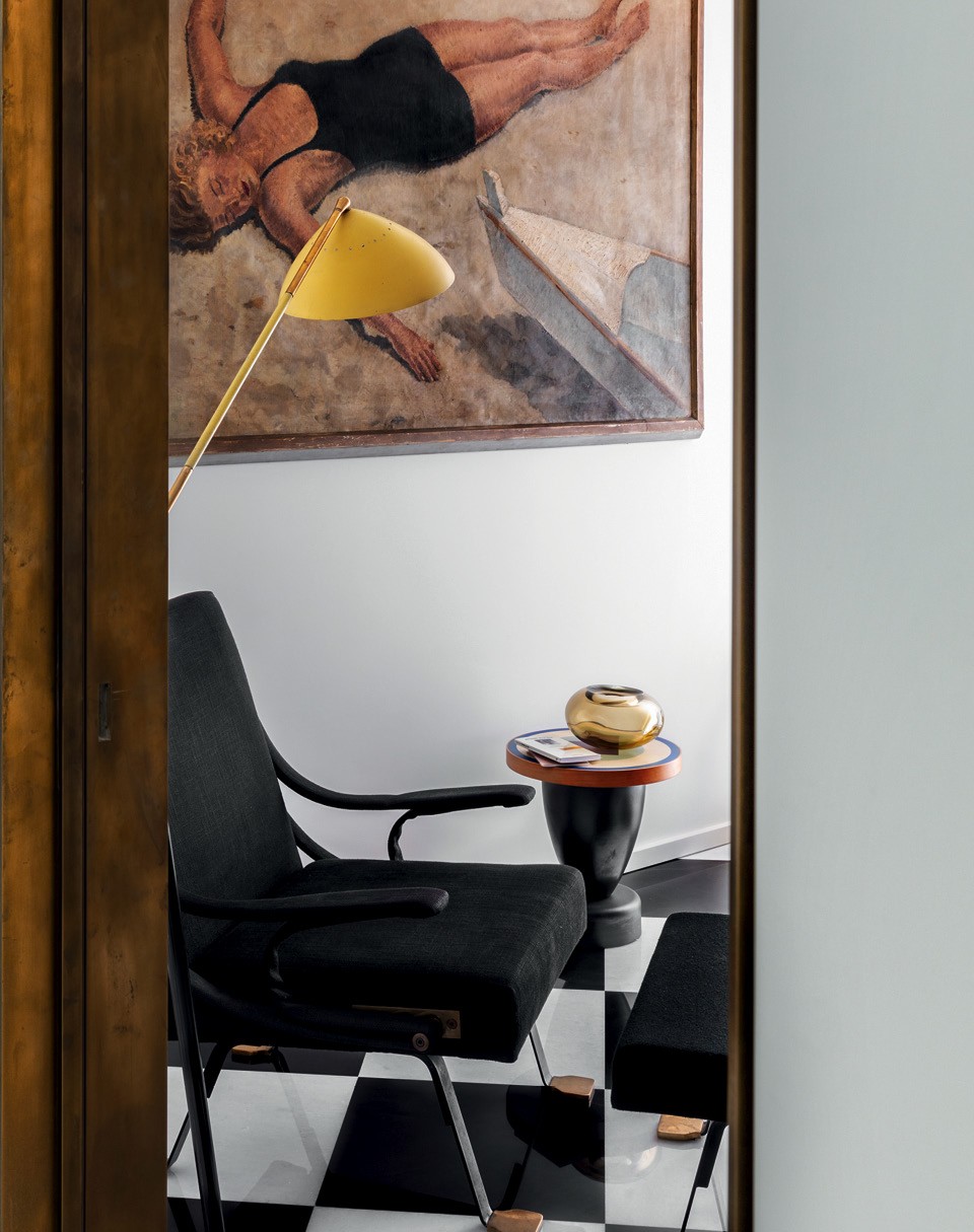 Анне-Марии Ансельми повезло со связями — она давно дружит с Ниной Яшар, владелицей Nilufar, одной из самых популярных галерей, торгующих винтажем и редкой дизайнерской мебелью. Вместе они обставили уже не один интерьер, но эта квартира стала для них особенной. “Я уже много лет собираю свою коллекцию мебели и искусства: что-то покупаю у подруги, а что-то — в других проверенных местах. Мне очень хотелось наполнить свой новый дом действительно ценными и любимыми вещами, — вспоминает хозяйка. — У меня огромный опыт в оформлении интерьеров, и большую часть деталей я продумала сама, но попросила Барбару Гидони из миланской Storage Associati помочь мне с планировкой, конструктивными элементами и встроенной мебелью. А после пригласила Нину, и мы оторвались по полной”.