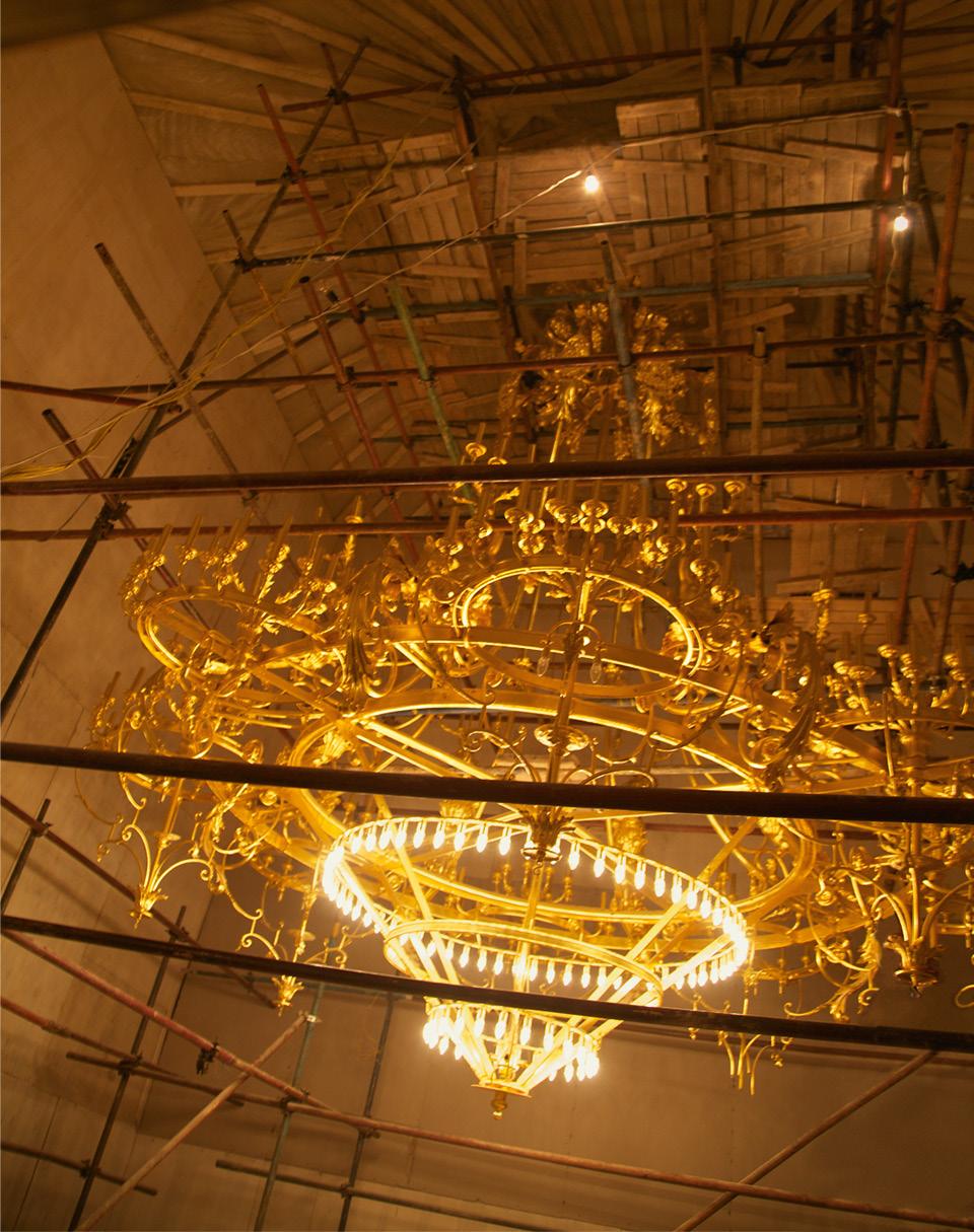 Люстра Большого театра в процессе реконструкции — еще одна грандиозная съемка Фрица фон дер Шуленбурга.