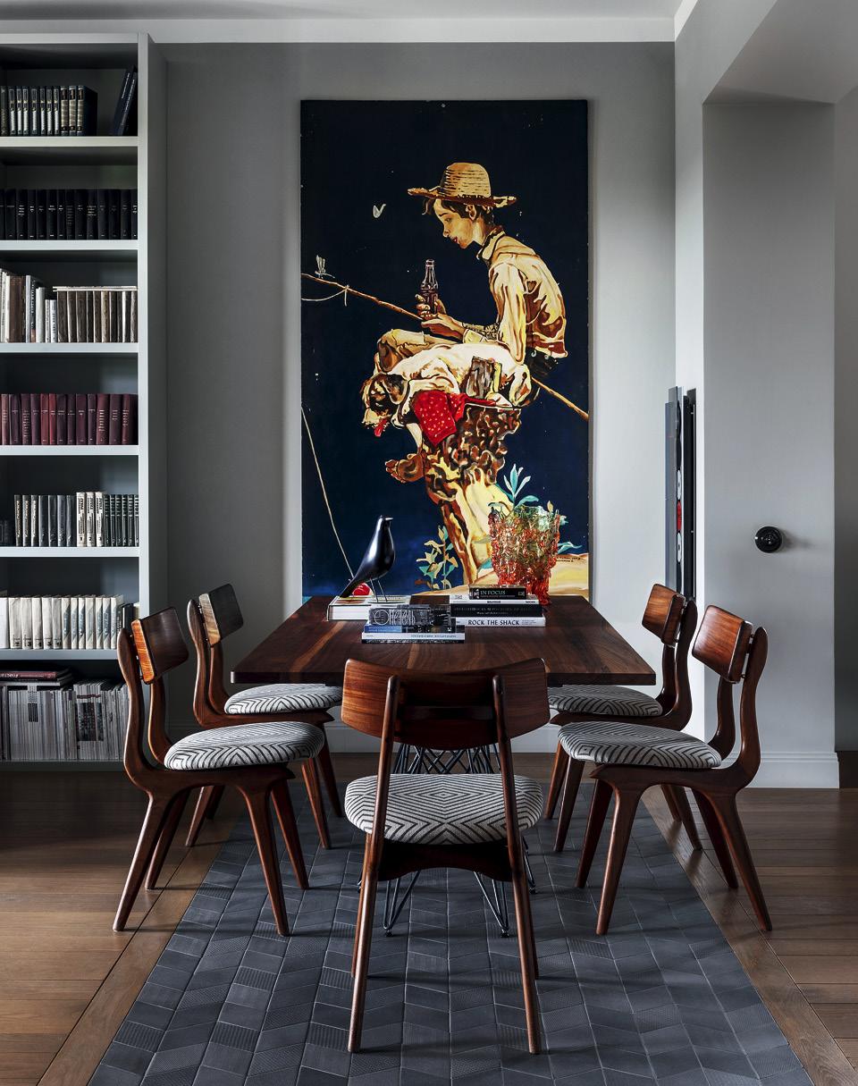 Довольно неожиданный интерьер для сталинки. Хотя, признаться, уже никаким проектам, которые вы публикуете, не удивляюсь. В любом случае мне очень понравилась эта работа Виктории Дзюбы из мартовского номера AD. Особенно запомнился кадр с креслом Гаэтано Пеше — очень уж он артистичный вышел. Да и пес добавляет интерьеру очарования. Кстати, несмотря на довольно минималистичную обстановку, не могу сказать, что квартира “холодная”, возможно, нужный эффект уюта достигнут за счет грамотного использования дерева в интерьере.
