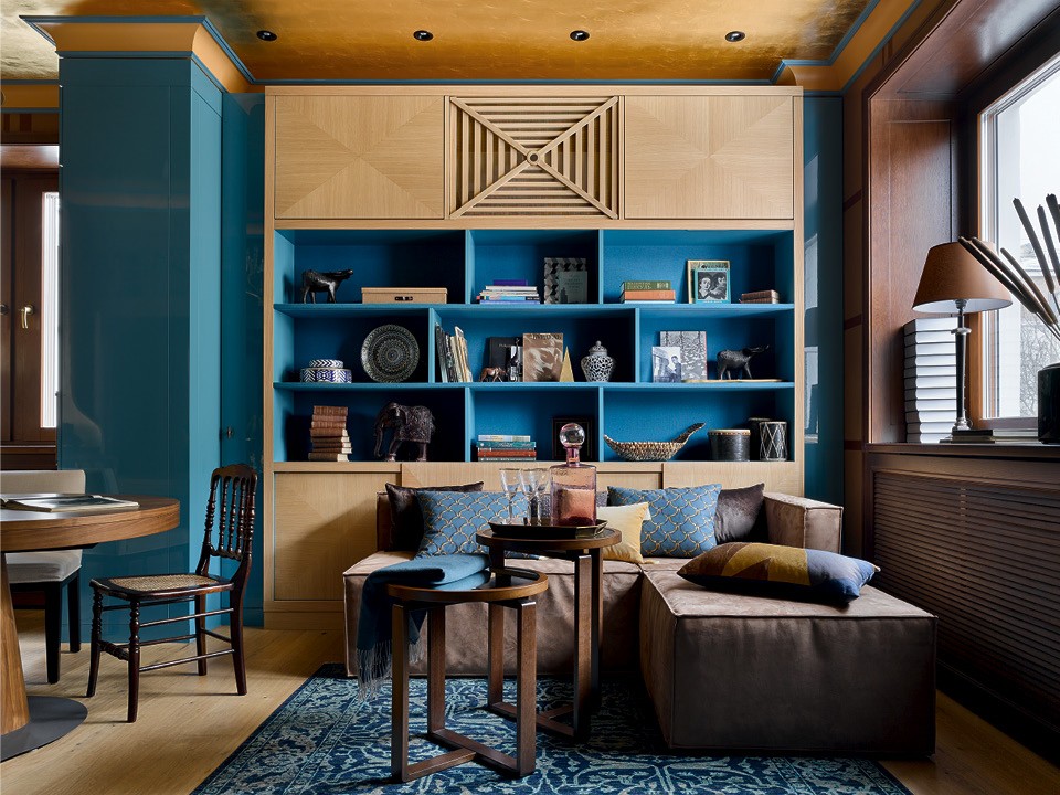 Когда мы впервые встретились с хозяйкой, она сказала, что ей нравятся восточные сказки, и я решила развить эту идею”, — рассказывает Кира. Заказчица много времени проводит дома, поэтому хотела, чтобы интерьер был бодрым и ярким, а ее супруг часто и надолго уезжает в командировки, и он мечтал о квартире в спокойных коричневатых оттенках, где можно отдохнуть от суеты. Все это дало ход фантазии: дизайнер нарисовала образ путешественника, который привез из дальних стран невесту с приданым и живет с ней здесь. Так крохотная трешка превратилась в небольшую роскошную резиденцию.