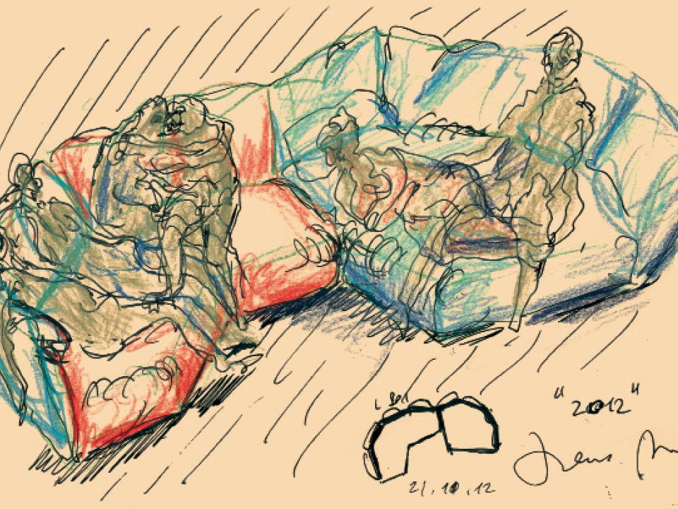 Франческо Бинфаре рисует диваны, которые довольно сложны в производстве, а технологи компании находят разные способы воплощения фантазий дизайнера в жизнь. Так, полюбившийся многим диван Pack, спинка которого напоминает спящего медвежонка, набивают материалом Gellyfoam®, который позволяет добиться особой мягкости сидений. А обивку делают из короткостриженого искусственного меха, похожего на мягкую шерсть, — вставать с такого уютного дивана никому не хочется.