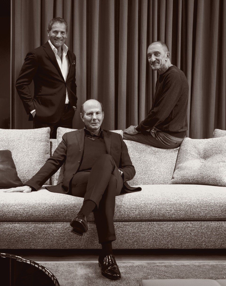 В конце 1990-х братья Роберто и Ренато Минотти, унаследовавшие от отца мебельную компанию, находились в поиске человека, который сможет вдохнуть новую жизнь в уже не очень молодую марку (Minotti существует с 1948 года). Когда они познакомились с Родольфо Дордони, были очарованы: “Дизайнер со вкусом и чувством стиля, артистичный и всегда по-милански элегантный”, — вспоминают братья. Их многолетний союз начался с робкого заигрывания: в 1997-м Дордони спроектировал кресло Suitcase в революционной для марки кожаной обивке. А через год появилась коллекция мягкой мебели с диваном Braque, популярным по сей день. Именно он и принес архитектору первый контракт на пять лет. И вот уже двадцать один год Родольфо является бессменным арт-директором Minotti и отвечает не только за все коллекции, но и за сценографию выставок, экспозицию в шоурумах, стратегию развития и имидж компании. “У него был опыт работы в моде, он полностью поменял наш стиль, сделал его узнаваемым, поэтому мы продлевали с ним контракт”, — говорят Минотти. За это время в их отношениях с архитектором стало больше доверия. “Раньше я объяснял свои идеи, показывал эскизы, и мы делали прототип. Теперь мы начинаем сразу с прототипа и вместе корпим над ним, как над скульптурой”, — отмечает Родольфо. А еще они вместе растят новое поколение: последние два года братья Минотти начали сотрудничать с Кристофом Делькуром, Марсио Коганом и Оки Сато. Во все премудрости бренда их посвящает лично Дордони.