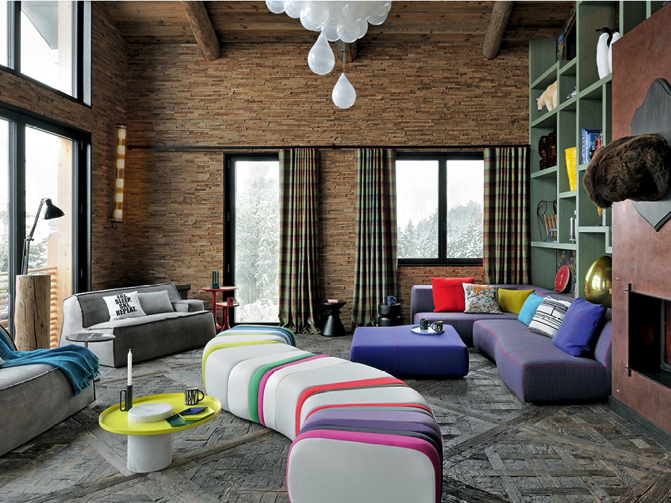 Архитектор Оливье Ге подошел к оформлению шале в Куршевеле с чувством юмора: вместо привычных альпийских мотивов здесь необычные объекты современного искусства.
