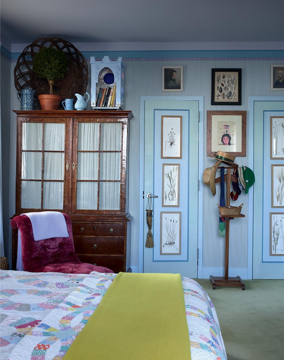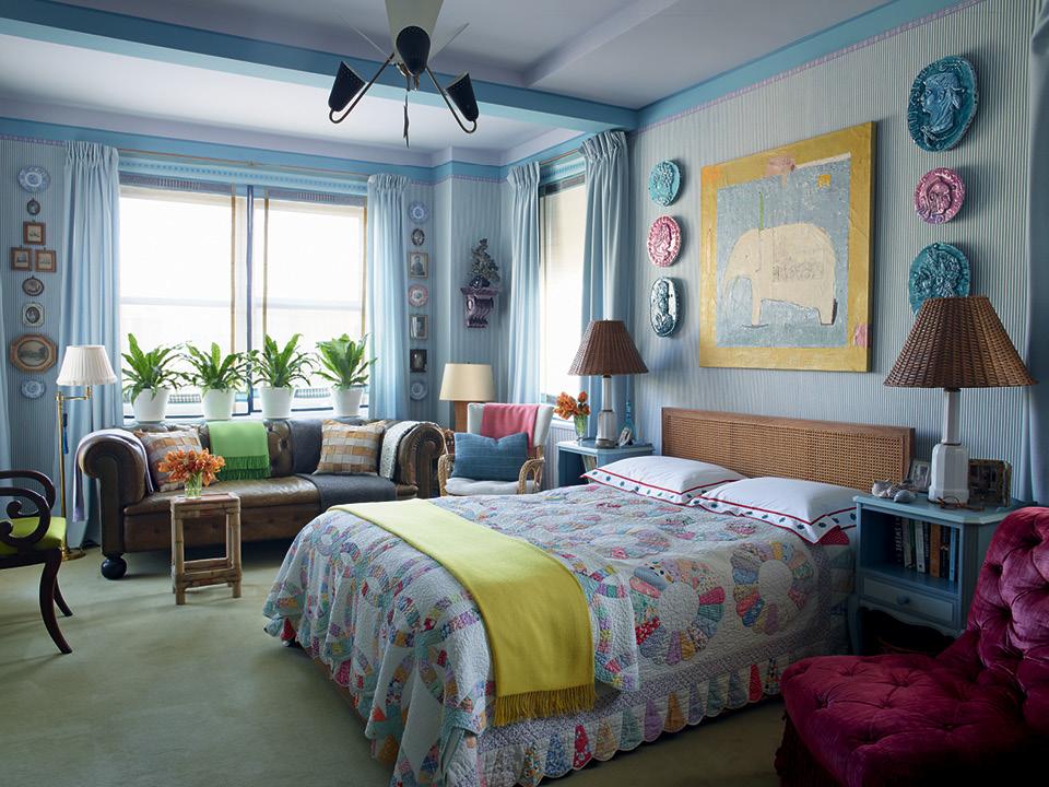 Особенность этой квартиры в том, что она арендованная, но это не помешало Фрэнку де Бьязи оформить ее по своему эклектичному вкусу: сложно представить себе, что изначально это была белая “коробка”. Дизайнер методично перекрасил все стены (например, спальня построена на сближенных сиренево-голубых оттенках) и наполнил пространство яркими тканями. Благодаря смелой колористике интерьер с традиционной по стилю мебелью выглядит богемно.