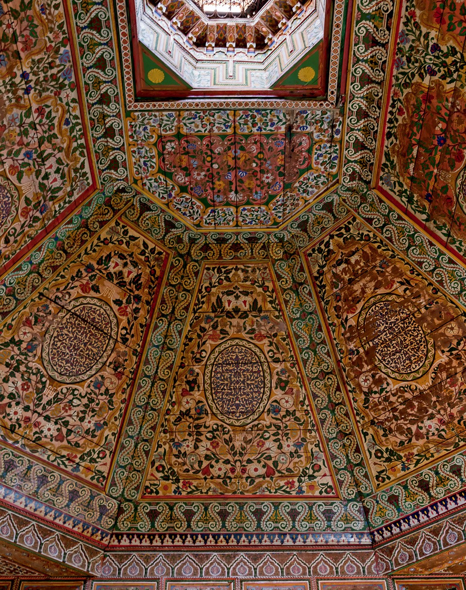Дворцу Бахия повезло больше, правда, он и помоложе — конца XIX века. Построен он был для одной из жен визиря Сиди Муссы. Ни ее, ни остальных жен, а также пару десятков наложниц наверняка не оставили равнодушными богато украшенные комнаты. До наших дней обстановка не сохранилась, зато целы стены, полы и отделка во внутреннем саду — узоры и орнаменты там можно рассматривать часами.