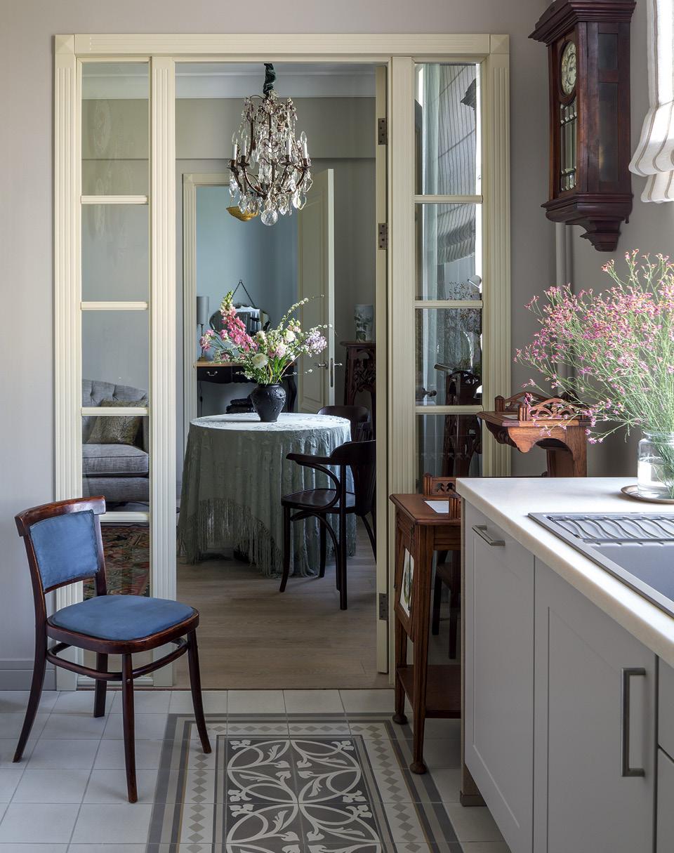 Елена занимается интерьерами уже около пятнадцати лет. Окончила школу “Детали”, а до этого получила образование историка, искусствоведа и эксперта по антиквариату. Именно любовь к старине когда-то и свела ее с хозяйкой квартиры, обладательницей большой коллекции антиквариата.