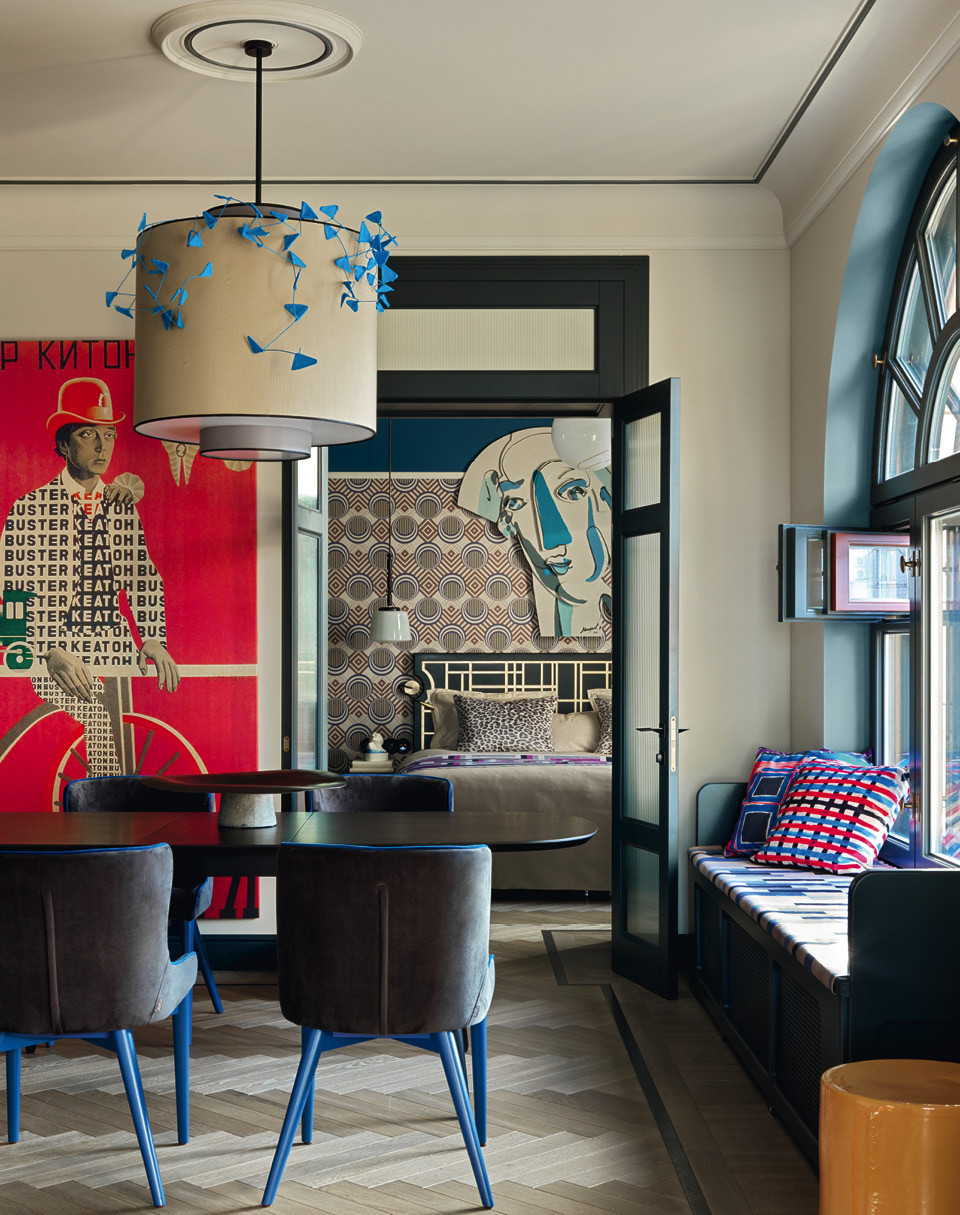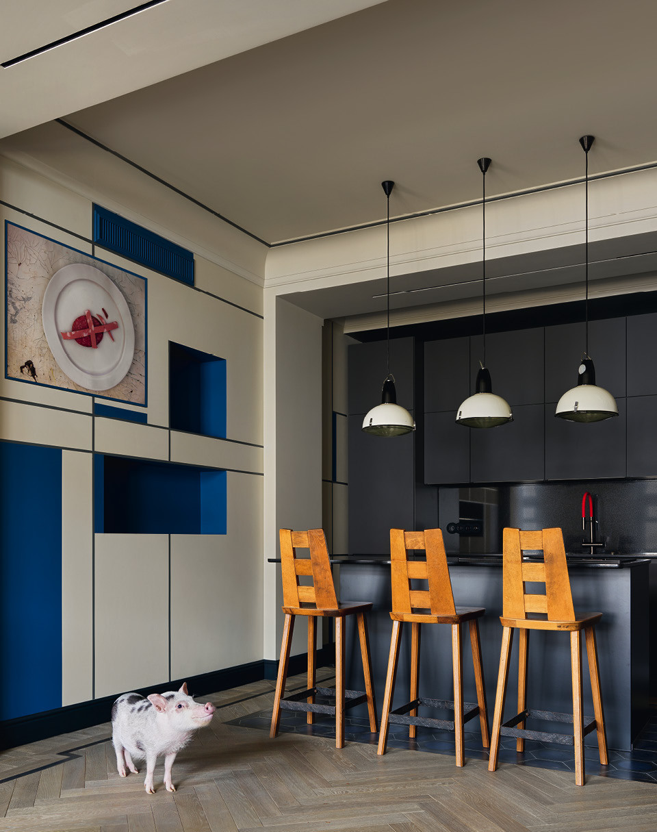 В московской квартире, оформленной Прохором Машуковым и Ольгой Седовой для художницы по костюмам, которая работает в кино, главная роль отведена авангардным принтам.