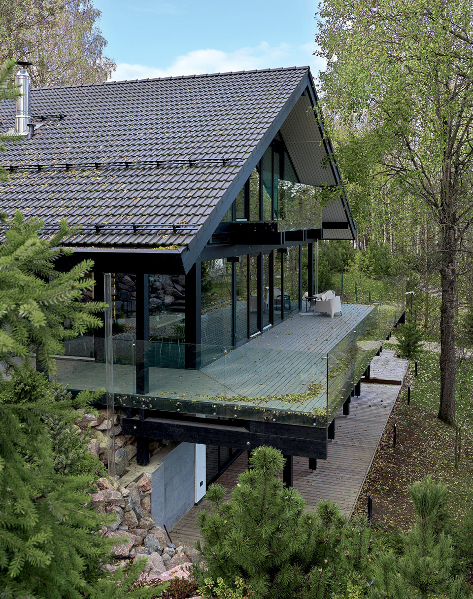 Основатели бюро Tolko Interiors Николай Колосков и Денис Горохов любят бросать самим себе вызов и браться за совершенно новые задачи. На этот раз им в работу достался дом в поселке Osko-Village в деревне Мендсары Ленинградской области. Особенность этого места в том, что все дома построены в стиле фахверк, только с панорамным остеклением. “Мы изучили интерьеры немецких фахверков, на наш взгляд, они очень аскетичные и унылые, — рассказывает Николай Колосков. — Стоит обычная кухня, стол и стулья в белой коже с хромированными ножками, на полу везде глянцевая плитка, а балки выкрашены в нейтральный цвет”. Заказчик тоже любит минимализм, поэтому стилистическое направление было определено сразу, а вот в вопросе технологий он хотел “все и сразу”, поэтому в здание нужно было внедрить самую продвинутую версию системы “умный дом”.