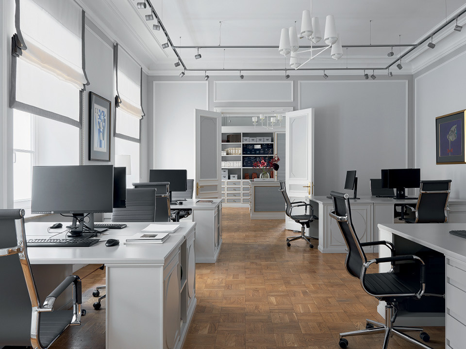 Но офис в этом доме она выбрала не из-за Пушкина, а благодаря очень удобной анфиладной планировке и сохранности помещений — паркет, двери и лепнина были в отличном состоянии. “Мы только перекрасили стены и двери, сделали новые санузлы в мраморе и заказали нужную мебель, — вспоминает дизайнер. — Это очень важно, ведь когда необходимо перевезти целый офис и двадцать сотрудников, ремонт нужно делать быстро”.