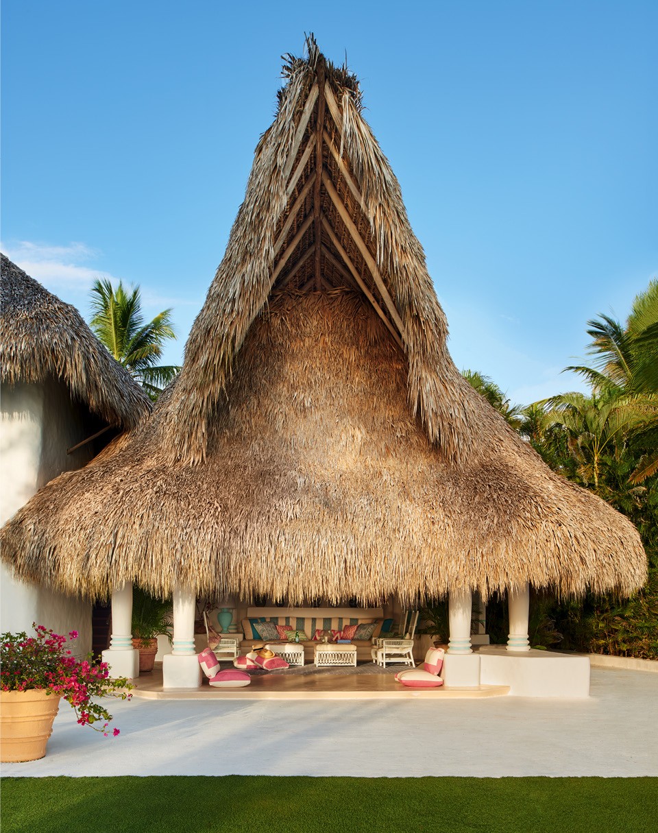 У этого дома уже были пятнадцать минут славы — в 1981 году его опубликовали в американском Vogue. Хозяева, Дрю и Минни Монтегю, дружили с бизнесменом, основавшим в Доминиканской Республике фешенебельный курорт Каса-де‑Кампо, и дизайнером Оскаром де ла Рентой, оформлявшим интерьеры здешних вилл. У Оскара на этом курорте было свое поместье La Casa de Madera, где в 1976‑м Дрю и Минни сыграли свою свадьбу. Решив обосноваться по соседству, они нашли на побережье участок с собственным пляжем и доверили строительство мексиканскому архитектору Марко Альдако. О нем семейная пара узнала от Глории и Лоэля Гиннесс, тети и дяди Дрю, для которых он спроектировал дом в Акапулько, переосмыслив традиционную мексиканскую архитектуру. Результат очень понравился молодым Монтегю, поэтому они решили работать с Альдако.