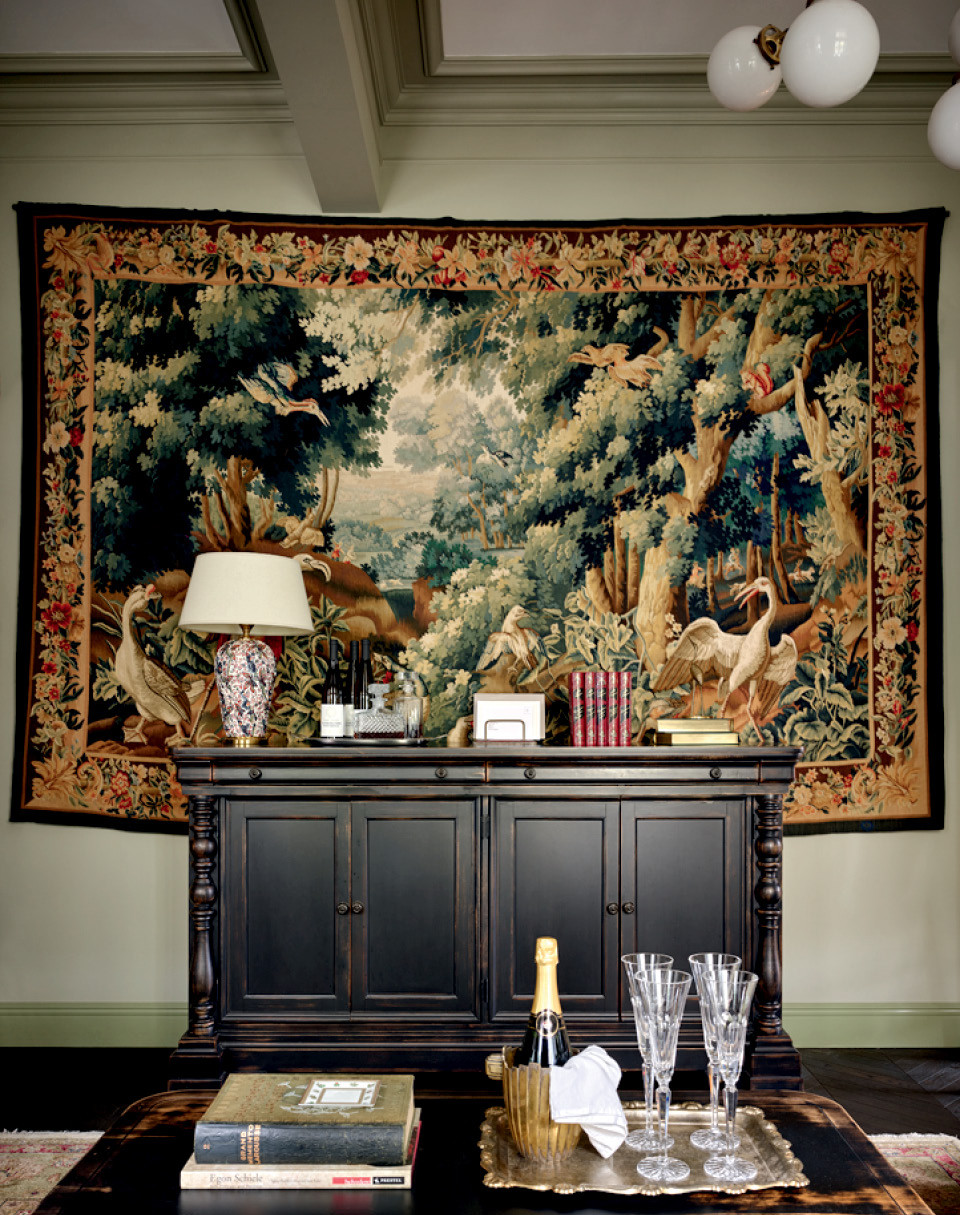 Красноречивее всех выглядит произведение “Женщина с ружьем”. “Оно принадлежит кисти испанского художника Хуана де ла Рики. На самом деле это Артемида, но я в ней вижу портрет моего плохого настроения”, — смеется Екатерина. Символично, что висит эта картина в конце коридора и входящему в квартиру она тут же попадается на глаза.