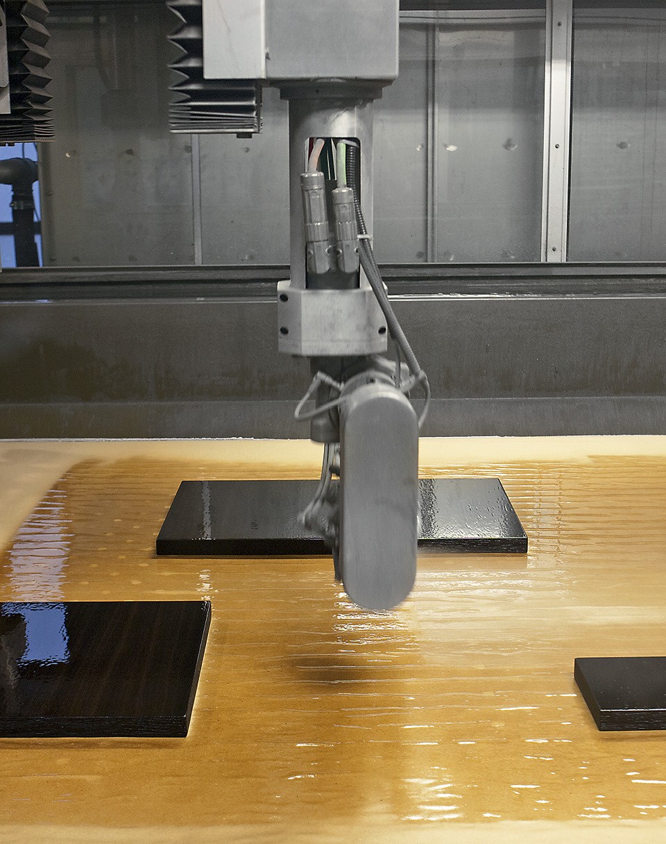 На выверенных до секунды и миллиметра автоматизированных производственных линиях, похоже, будущее наступило раньше, чем в научно-фантастических фильмах. Цех начинается с двух пантографов-близнецов, выполняющих вроде бы одинаковые операции: распиливают серые панели и прорезают в них отверстия, необходимые для последующей установки крепежей. На самом деле на одной машине делают каркасы и полки, а на другой — угловые и высокие шкафы для мебели по индивидуальным размерам. Такое разделение позволяет с легкостью вносить корректировки в соответствии с пожеланиями клиента.