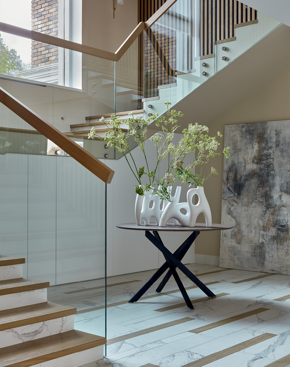 Заказчики, которые точно знают, чего они хотят, — большая редкость. Но Антонине Синчуговой повезло: ей достались именно такие. Раньше они жили в таунхаусе и, можно сказать, протестировали жизнь в собственном доме, поэтому представляли себе будущее жилье во всех деталях: площадь, количество комнат и даже стилистику и основную цветовую гамму интерьера. “Весь проект мы делали с нуля. Супруги сформулировали очень четкое техническое задание, и мы начали одновременно строить дом, продумывать интерьер и заниматься ландшафтом, поэтому смогли уложиться в рекордные сроки — три года”, — рассказывает архитектор. Площадь участка всего двадцать соток, но заказчики решили, что большой дом в наших широтах нужнее, чем свободное пространство вокруг него. Супружеская пара с двумя детьми планировала жить здесь постоянно, поэтому комфортный интерьер им был важнее.