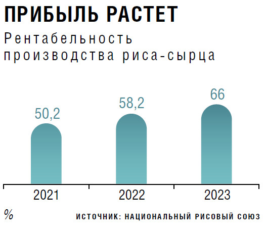 Рис относится к маржинальным культурам, подтверждает исполнительный директор ассоциации «Национальный рисовый союз» (НРС) Михаил Радченко. В прошлом году рентабельность данной агрокультуры в среднем составила 66 %. При этом оросительные системы сейчас многие используют исключительно для риса. «Если раньше сеяли пшеницу, подсолнечник, то теперь с такими вывозными таможенными пошлинами их невыгодно выращивать по севообороту в рисовой оросительной системе, — поясняет он. — Таким образом, рис — одна из наиболее доходных позиций, а также он востребован потребителем».