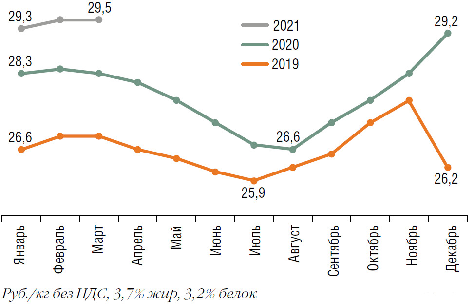 Компания Streda Consulting, оказывающая услуги стратегического консалтинга предприятиям агробизнеса и пищевой промышленности, оценивает повышение себестоимости производства сырого молока в 2020 году в 15–18% в зависимости от хозяйства. «Девальвация рубля вылилась в удорожание как импортных компонентов, так и других средств производства, привязанных к валютной составляющей», — поясняет управляющий партнер Streda Consulting Алексей Груздев. К ним в том числе относятся белковые корма, стоимость которых буквально взлетела в прошлом году и продолжала расти в первом квартале текущего. По информации «Союзмолока», во втором полугодии 2020-го в ряде регионов рост цен на белковые корма составил от 30% до 70%. Также увеличились стоимость зерновых, затраты на электроэнергию. «Бивалютная корзина прибавила примерно 20%, что повлекло за собой и рост всех связанных с ней расходов, в числе которых ветпрепараты, генетический материал, кормовые добавки», — комментирует Белов.