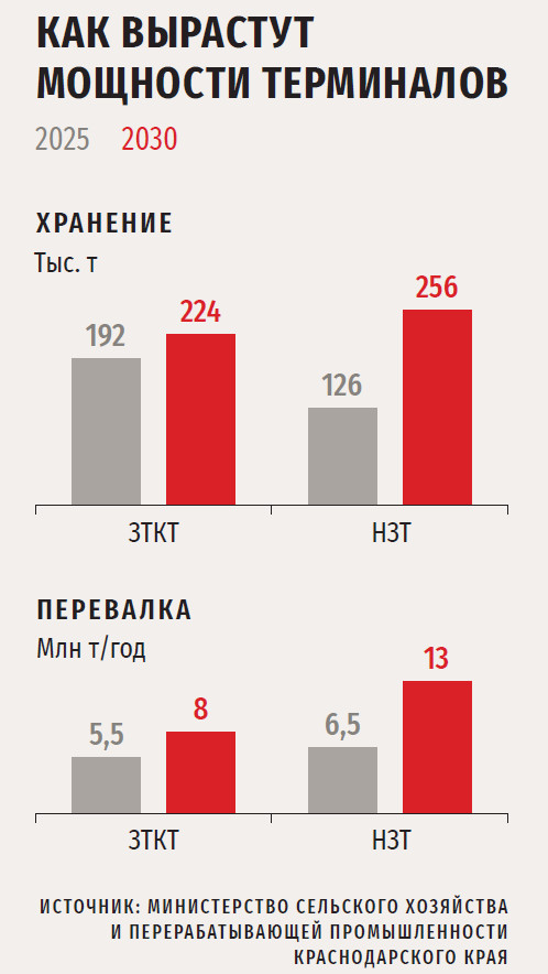 На ЗТКТ также планируется строительство железнодорожной инфраструктуры. Работы будут осуществляться в рамках заключенного концессионного соглашения с Росжелдором, рассказывает Кривошеев. Реализация проекта по реконструкции рассчитана на период с 2024 по 2028 год. К началу августа на объекте были выполнены проектные работы, получены необходимые согласования и разрешения. Проект укрепит экспортные возможности российской аграрной отрасли и обеспечит дополнительную логистическую гибкость на юге России, уверены в холдинге. В результате реализации запланированных в Тамани проектов ежегодная мощность перевалки терминала вырастет с 5,5 млн до 8 млн т.