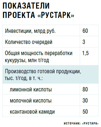 «Нам однозначно нужно собственное производство лимонной и молочной кислот, а также ксантановой камеди», — подчеркивает президент Ассоциации предприятий глубокой переработки зерна (Союзкрахмал) Олег Радин. По мнению эксперта, продукция «Рустарка» в любом случае будет конкурентоспособной. Кроме того, у компании уже есть опыт реализации проекта по мальтодекстрину. Благодаря ему, а также предприятию компании «НьюБио» удалось заместить практически весь импорт, хотя еще пять лет назад данный продукт в России вообще никто не производил. При этом из-за доступности мальтодекстрина выросло и его внутреннее потребление — с 35 тыс. т до 55 тыс. т в год, знает Радин.