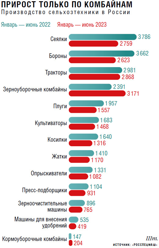 Подавляющее большинство российских предприятий успешно справились с данными вызовами. Производства не останавливались, обрушения выпуска отечественной сельхозтехники в 2022 году не произошло. Более того, уже сейчас российские сельхозмашиностроители при наличии платежеспособного спроса готовы существенно нарастить поставки своей продукции. Но, к сожалению, как раз спрос и сокращается. Причем как на отечественную, так на зарубежную (дорогую и дешевую) технику. А так как заводы напрямую зависят от покупательной способности аграриев, то и они вынуждены уменьшать объемы производства.