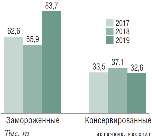 В последние двадцать лет российским аграриям удалось серьезно нарастить производство овощей открытого грунта после серьезного падения, которое наблюдалось в 1990-е, рассказывает Решетникова. Соответственно, выросла и сырьевая база для загрузки мощностей перерабатывающих предприятий. Та же кабачковая икра, родина которой — СССР и которая до сих пор пользуется хорошим спросом в России, производится только из собственного сырья, выращенного в открытом грунте. Правда, изготавливается она как из свежих, так и из замороженных кабачков. «Переработчикам необходимо загружать мощности круглый год, тогда как сезон сбора урожая в России длится всего несколько месяцев. Поэтому овощи, которые не предполагают длительного хранения — помимо кабачков, это те же томаты и баклажаны, — предприятия частично замораживают и по мере необходимости пускают на переработку», — поясняет эксперт. Тем не менее значительная доля сырья для перерабатывающих мощностей все еще поставляется из-за рубежа. Многие отечественные производители замороженных овощей, по сути, лишь расфасовывают приходящую из-за рубежа (преимущественно из Китая) продукцию в более мелкую упаковку.