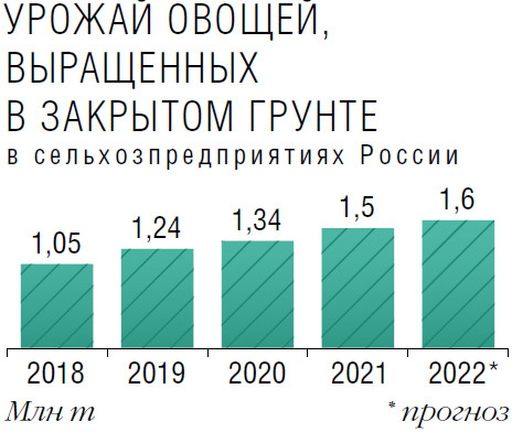 По итогам этого года российское производство тепличной продукции может увеличиться на 4–8 % относительно 2021-го. Темпы прироста валового сбора овощей, выращенных в защищенном грунте, теперь несколько скромнее, чем в первые годы развития сектора. Но такая ситуация логична: рынок все больше насыщается товаром собственного производства, и делать ставку на наращивание объемов уже не нужно. Теперь предприятия больше работают над расширением ассортимента и повышением эффективности бизнеса. Впрочем, новые теплицы тоже возводятся: в 2022 году в строй может быть введено до 150 га.