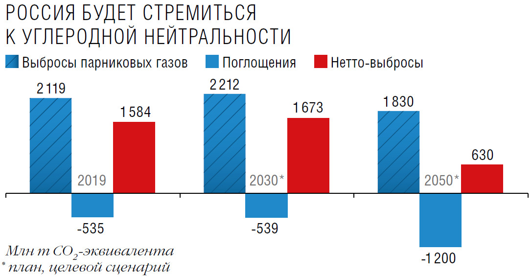 В октябре прошлого года правительство утвердило Стратегию социально-экономического развития Российской Федерации с низким уровнем выбросов парниковых газов до 2050 года. Ее цель — достижение углеродной нейтральности при устойчивом росте экономики. Реализация климатических проектов должна начаться с этого года: в стране предстоит внедрить более щадящие с экологической точки зрения решения, а также увеличить поглощение парниковых газов лесами и другими природными экосистемами, кроме того, необходимо перейти к сбору и переработке углекислого газа. Крупнейшие предприятия с выбросами свыше 150 тыс. т эквивалента углекислого газа в год начиная с 2022-го будут обязаны предоставлять углеродную отчетность, первые результаты которой появятся в 2023 году.