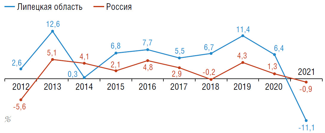 Согласно информации Территориального органа Федеральной службы государственной статистики по Липецкой области, по итогам 2019 года (более поздние данные официальной статистикой пока не обнародованы) сельское хозяйство, включая лесное, охоту, рыболовство и рыбоводство, в структуре валового регионального продукта занимало второе место после обрабатывающих производств. С 2009 года доля отрасли в ВРП выросла с 8,9 % до 11,6 % в в 2019-м, а в 2020-м по оценке составила около 12,5 %. Среднегодовая численность занятого в АПК населения составляет более 59 тыс. человек.
