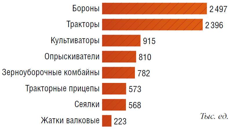 По предварительной оценке Управления сельского хозяйства Липецкой области, объем закупки агротехники в 2021 году в стоимостном выражении превысил 4 млрд руб. Обеспеченность ею составляет около 188 л. с. на 100 га пашни. При этом на самоходные сельхозмашины со степенью износа свыше 10 лет приходится 20 % от общего их количества, от трех до 10 лет — 60 %, до трех лет — 20 %.
