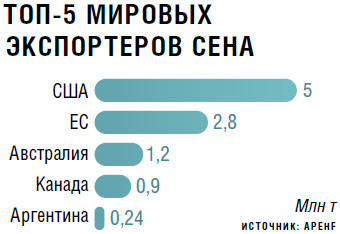 «В мире есть страны, которые в принципе не в состоянии обеспечить себе кормовую базу, — комментирует Белов. — Например, арабские государства ввиду дефицита водных ресурсов для мелиорации ограничены в возможности выращивать кормовые культуры на поливе и все сено/сенаж закупают извне». Среди основных покупателей объемных кормов — Япония, Тайвань, Корея, Китай, Саудовская Аравия, Иран, ОАЭ, Бахрейн, Кувейт и Ливан. Интерес к товару начали также проявлять Индия, Израиль, некоторые страны Южной Америки. «Что касается китайского рынка, то КНР и сама является крупным производителем сена, но в стране появилось большое количество новых высокоинтенсивных животноводческих проектов, где требуются качественные корма, и собственных объемов уже не хватает, — знает руководитель. — Соответственно, Китай год от года все больше закупает корма на внешнем рынке, причем республика старается диверсифицировать поставки, чтобы снизить зависимость от американских и европейских поставщиков».