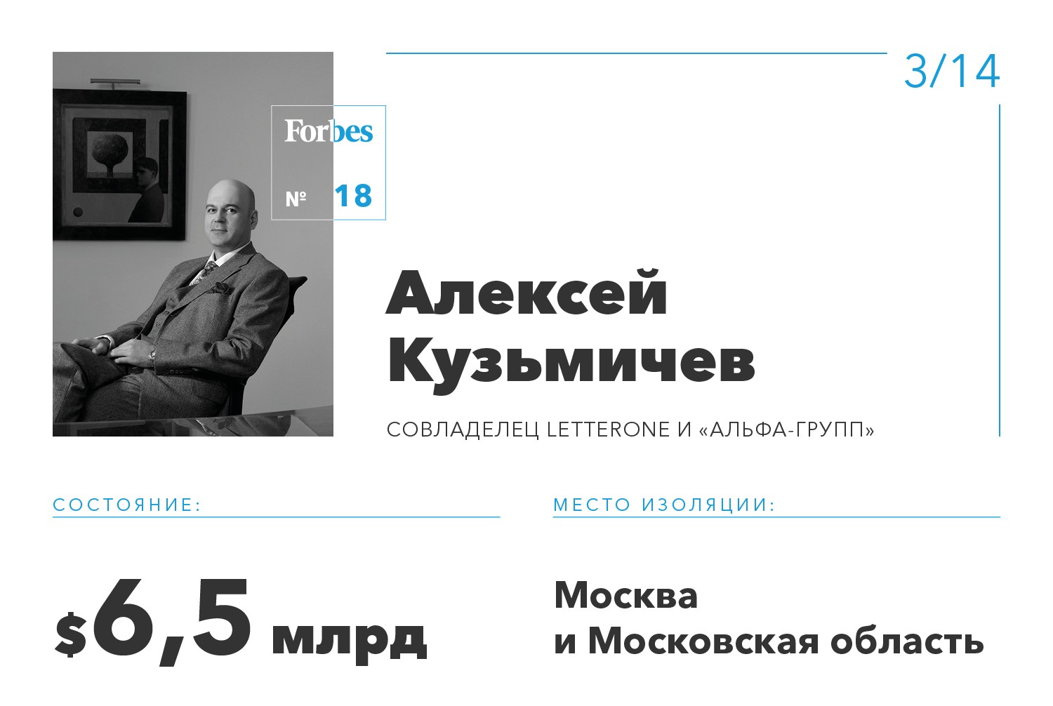 Партнер Михаила Фридмана по LetterOne и «Альфа-Групп» Алексей Кузьмичев в обычное время живет между Лондоном и Парижем. Он приехал в Москву по делам и вынужден был задержаться: «Я как смогу, так и улечу. Никакие дела меня здесь уже не держат. Жду развития ситуации в Европе. Я могу вылететь в Британию, но я не очень хочу туда, жду, когда откроется Франция, полечу во Францию к семье. Я не вижу проблем с вылетом из Москвы сейчас я резидент Великобритании, и у меня вид на жительство, поэтому туда у меня есть законные основания приехать, а въехать во Францию у меня пока никаких оснований нет — я не гражданин», — объяснил он свою ситуацию в разговоре с Forbes.