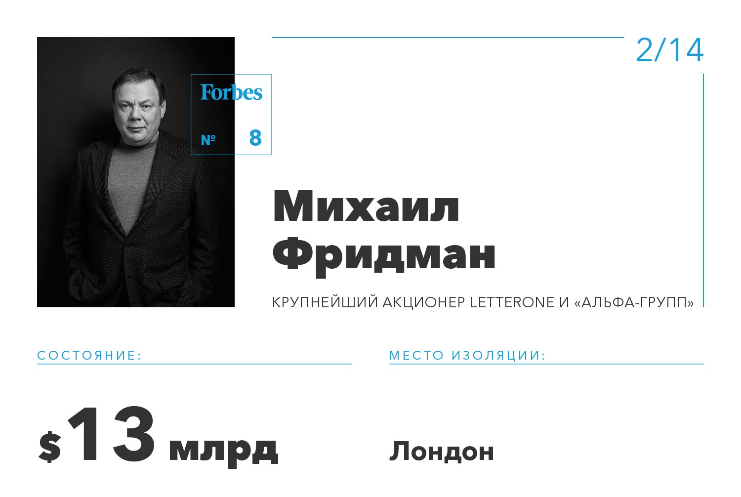 Михаил Фридман, Алексей Мордашов, Фархад Ахмедов, Сергей Саркисов и еще десять участников рейтинга 200 богатейших предпринимателей рассказали Forbes о своей жизни в изоляции