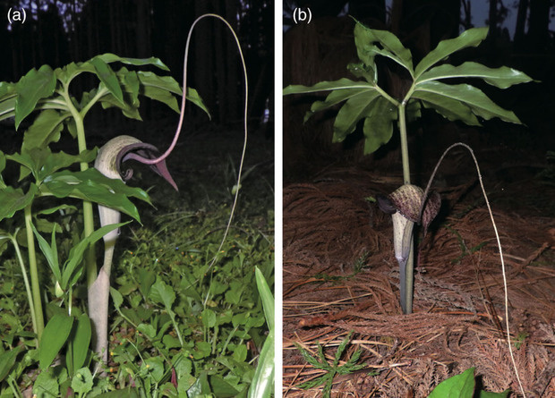 Соцветия однопокровниц Arisaema (thunbergii) urashima заканчиваются длинными нитевидными отростками. Японские ботаники выяснили, что эти необычные структуры привлекают основных опылителей этих растений — грибных комаров из рода Mycetophila. Правда, конкретный механизм пока остается неизвестным. Результаты исследования опубликованы в статье для журнала Ecology.